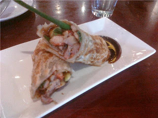 I wanted to compare Bangkok 54 with Thai Square, so I decided to order the same items. First course was the fried tofu. I figured it would be at par with Thai Square's. Tofu is already bland, how can anyone possibly ruin it? Surprisingly, Bangkok 54 did. The tofu was not fried long enough, so it didn't develop a crunchy shell. As well, there was a lack of seasoning. It's amazing what a little salt and pepper can do! For my main meal, I searched for the tripe soup. However, one item on the menu caught my eye: the House Special Duck Roll. I am such a sucker for duck, despite how fatty it naturally is, so forget the tripe, duck roll it is. When the duck roll arrived, the smell was so intoxicating I couldn't wait to bite into it! Oh. Em. Gee. Where do I begin? The duck was not greasy (as it has the tendency to be) and was super tender and well-seasoned. The green onion added spiciness and the cucumber was a refreshing contrast in the mix as it cut through the heavy meatiness of the duck. The best part, however, was the roti! It reminded me of a freshly baked croissant. The roti was buttery and flaky, and complemented the fixings by tying all the flavours and textures together. I'm pretty sure this was not a traditional Thai roll, but at this point, I could have cared less. The sauce the roll was served with was a combination of sweet mustard and hoisin sauce. That sweet and salty combination: so Asian, so perfect.